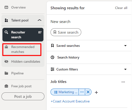 The tools make your talent hunt easier with AI recommendations, helping you find up to 10% new, qualified candidates. This feature relies on your real-time hiring signals (e.g., Save, Hide, or Message candidates) to reveal professionals who might otherwise be overlooked.