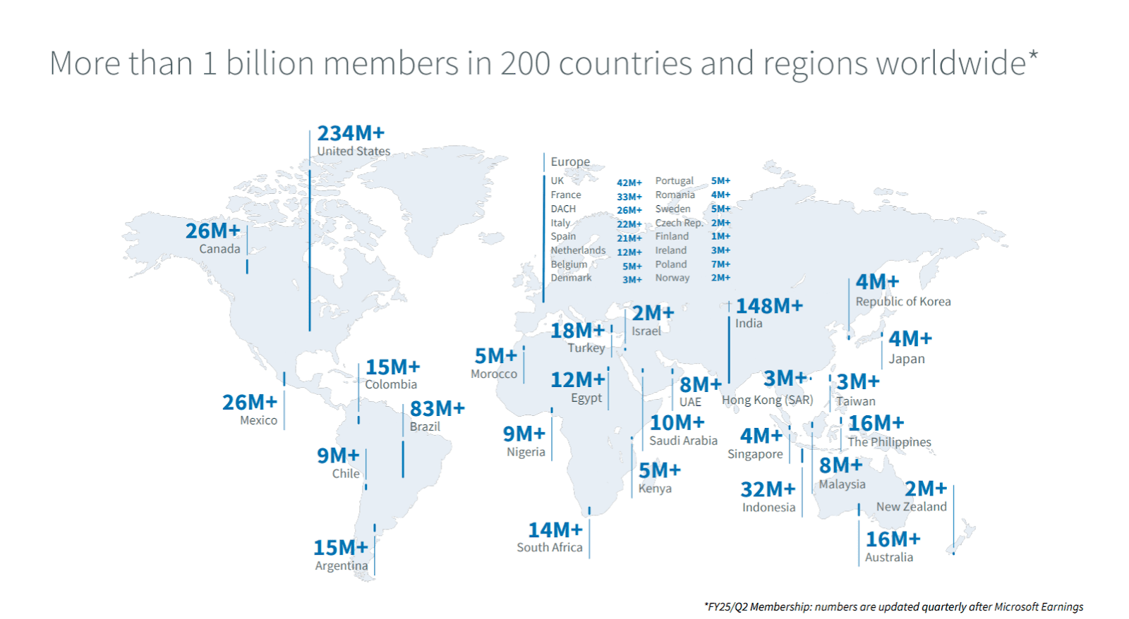 LinkedIn covers a broad professional demographic worldwide: 304 million+ professionals in North America, 326 million+ people in the Asia-Pacific region, 260 million+ in Europe, and 199 million+ in Latin America.