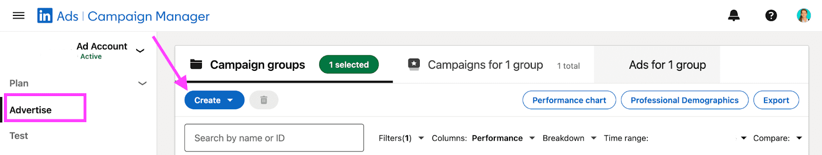 1. Go to your Campaign Manager and then to your Ad Account. Your advertisement account is linked to your business page.