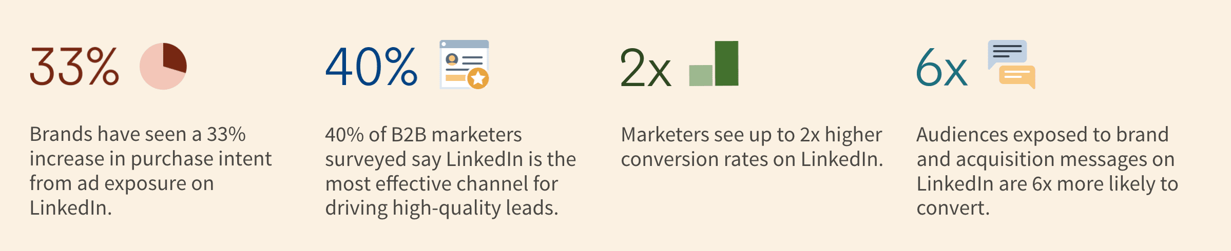 It’s not surprising that 40% of B2B marketers report LinkedIn to be the most effective lead generation channel. What’s more, posting ads on this platform usually results in a double or triple increase of brand visibility, which results in a 33% increase in purchase intent.