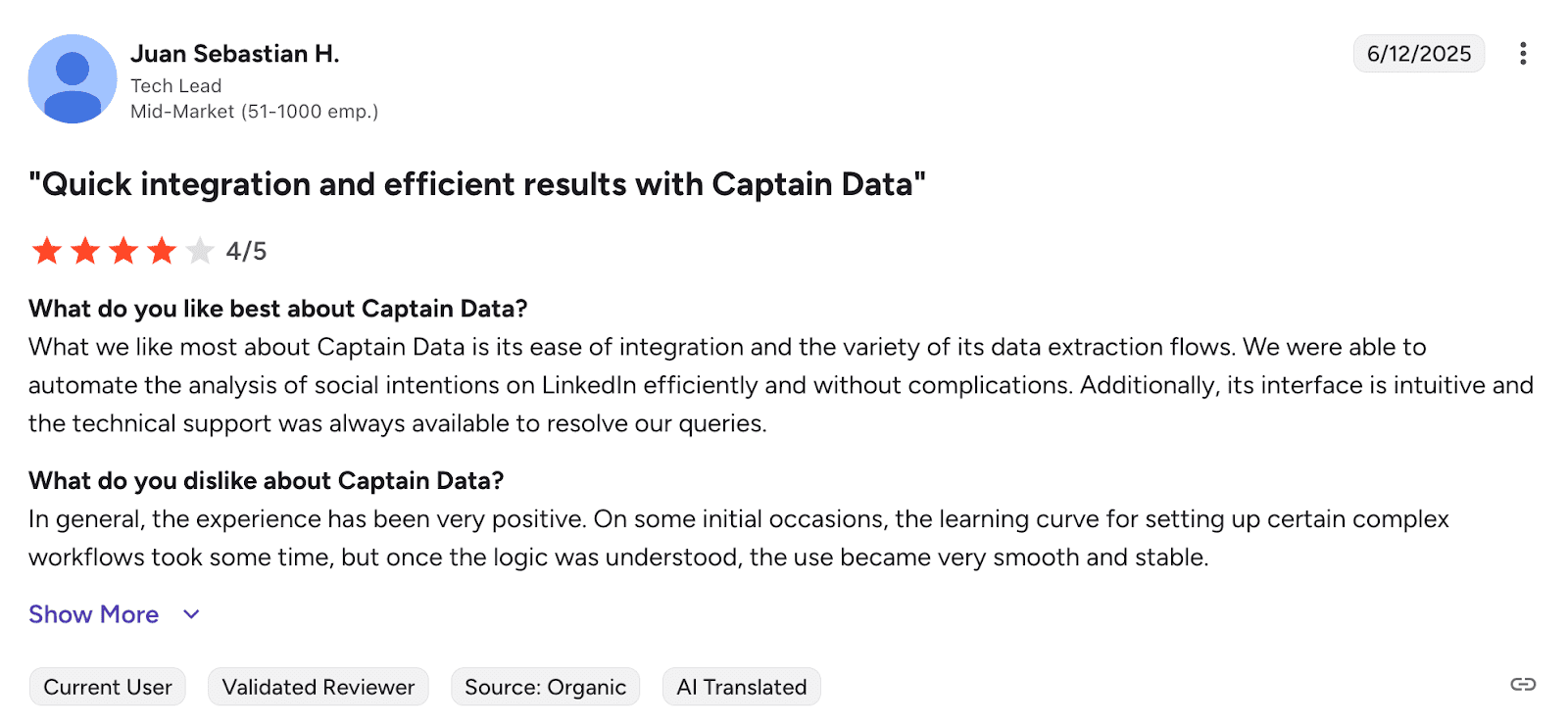 Users appreciate Snov.io’s clean interface and reliable email verification, which makes lead generation straightforward. The support team is responsive, and integrations work well. The main trade-off is getting comfortable with all the features.