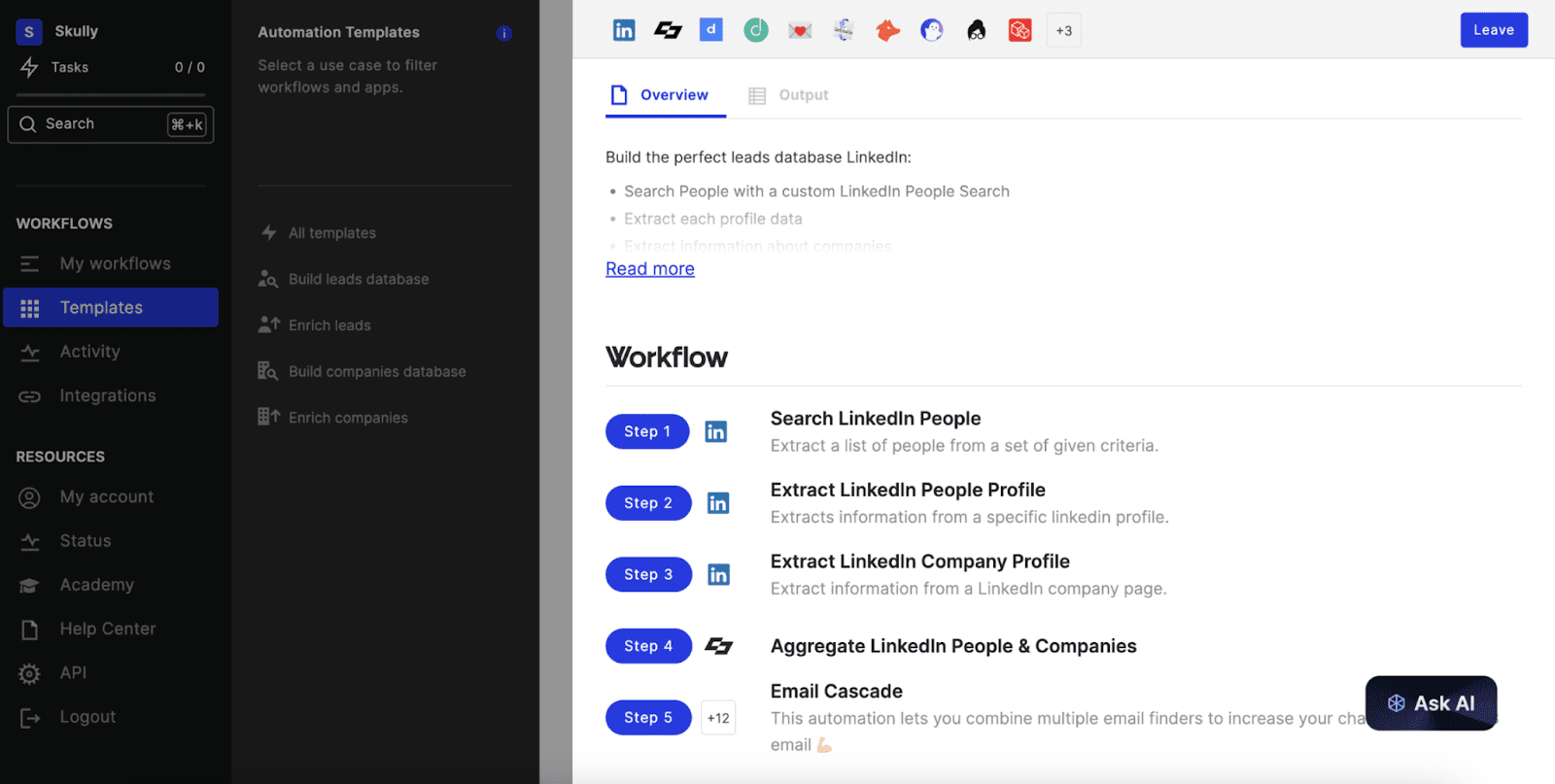 Phantombuster is among the LinkedIn scraping tools that let you pull public data from profiles, including emails. With it, you can also extract lead lists from other platforms and export them directly to spreadsheets.