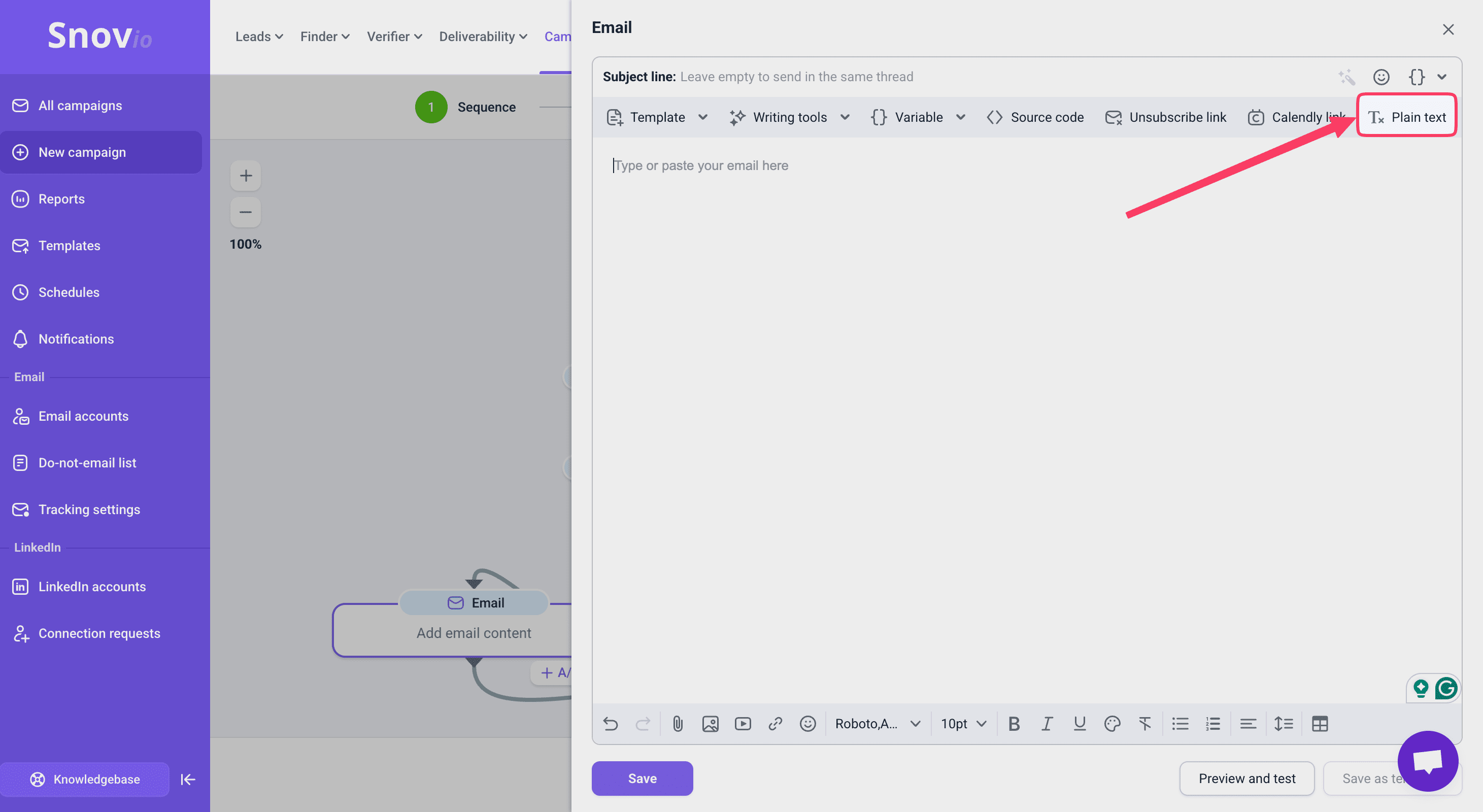 With Plain Text Mode, Snov.io automatically removes any formatting or elements that could trigger spam filters, helping you maintain a strong sender reputation.