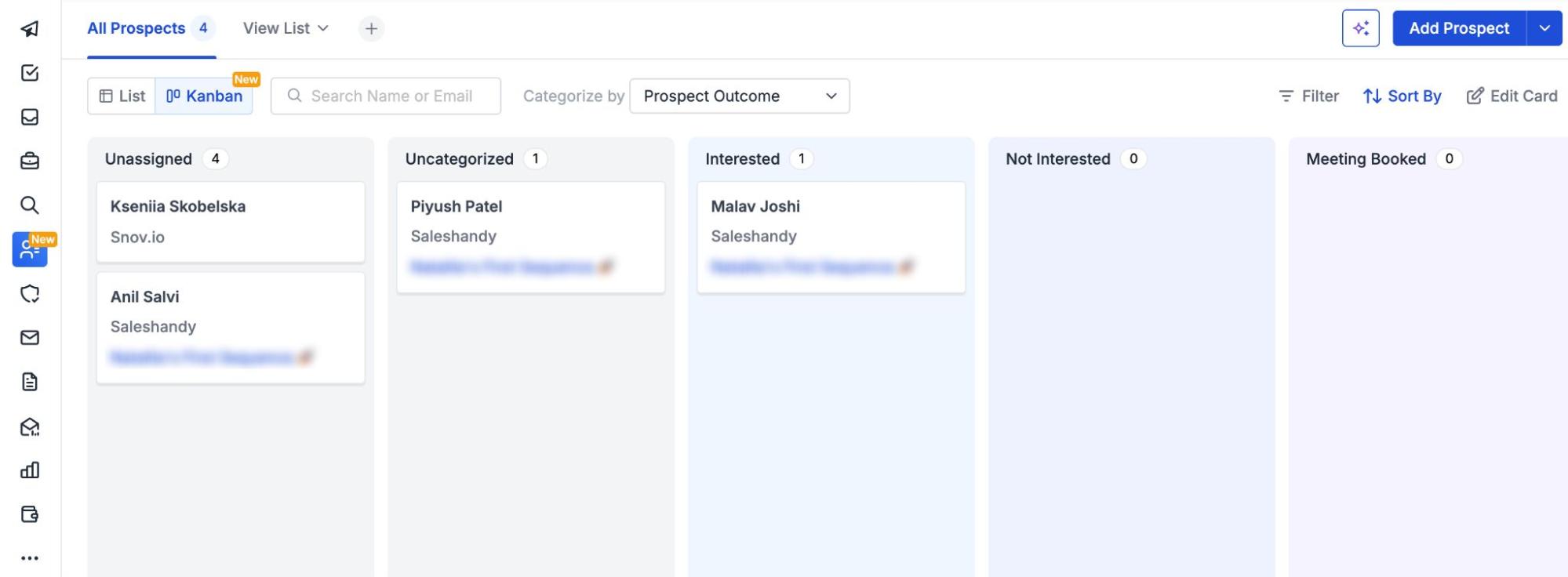 Among the Saleshandy features and tools, I also tested its CRM interface. Needless to say, it feels quite intuitive thanks to the Kanban view.