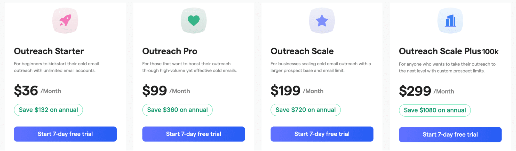 - The Outreach Starter plan covers entry-level sending and automation, and costs $36 per month.