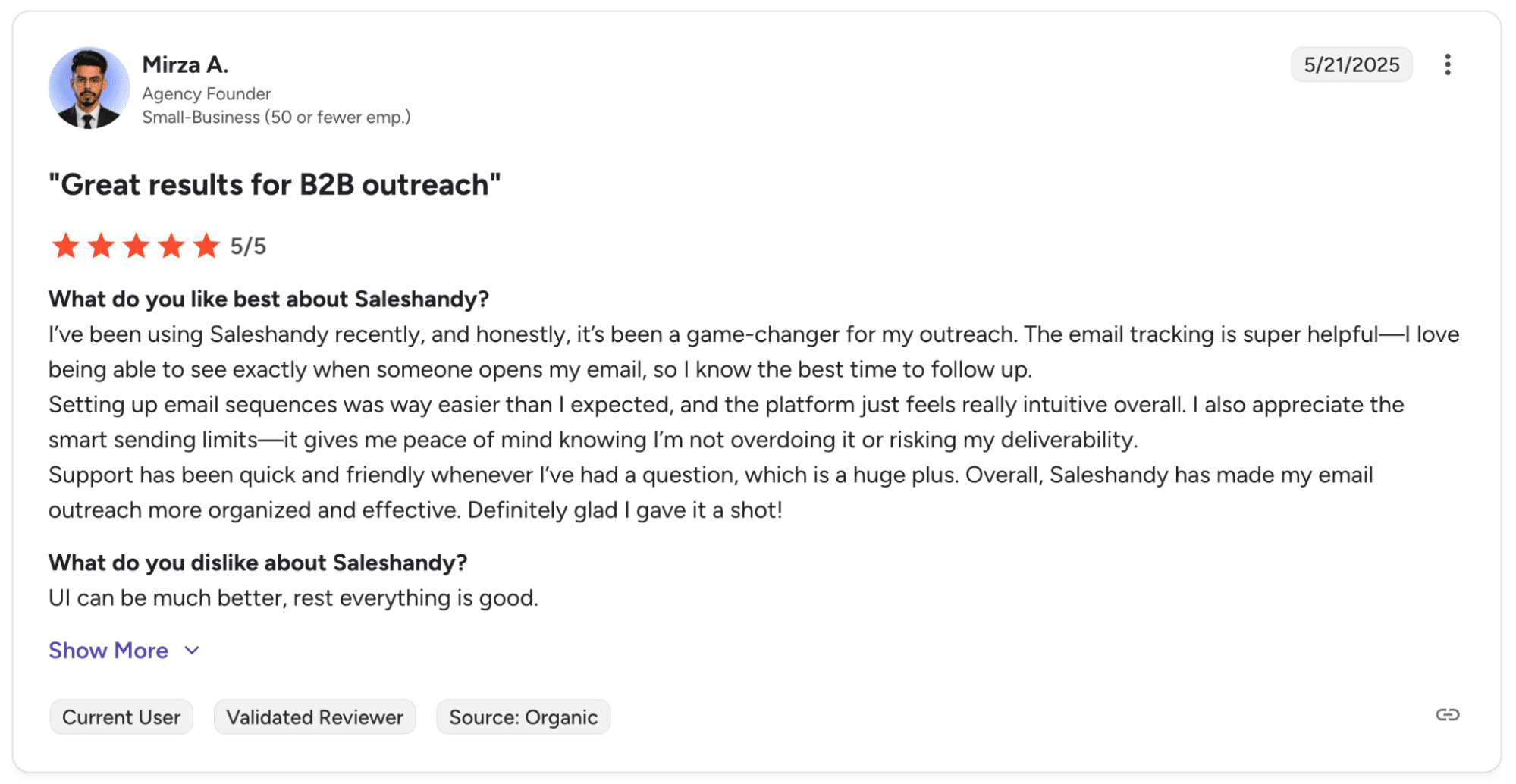 Saleshandy review from other users