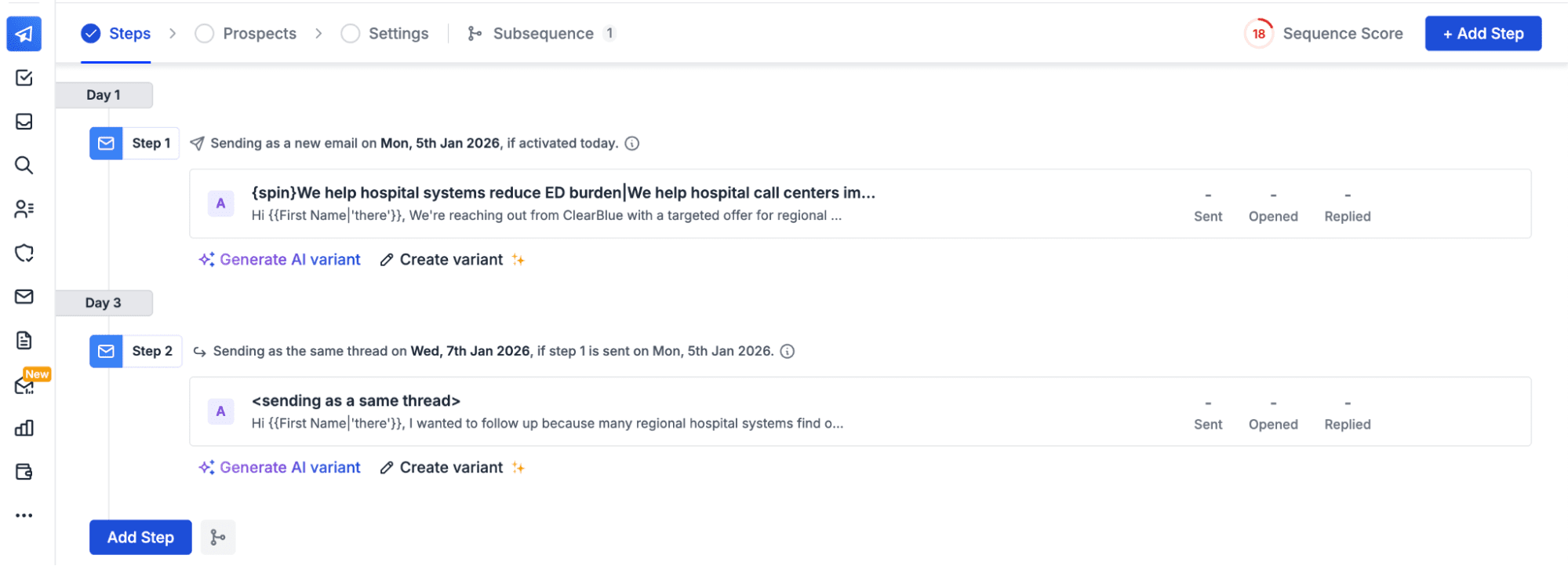 But while this sounds good on paper, in my experience, the result is far from ideal. The AI works well only for a very rough draft. If you want a sequence and a copy that will bring in prospects, you have to build the sequence yourself.