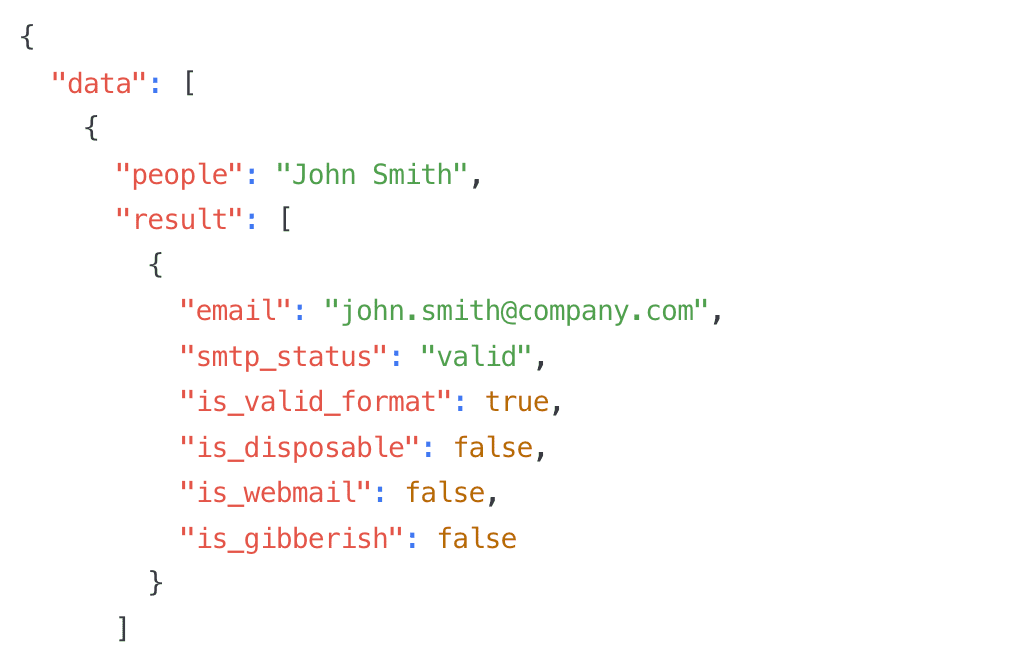 Para cada prospect que você adicionou à requisição, a Snov.io retornará os seguintes dados: