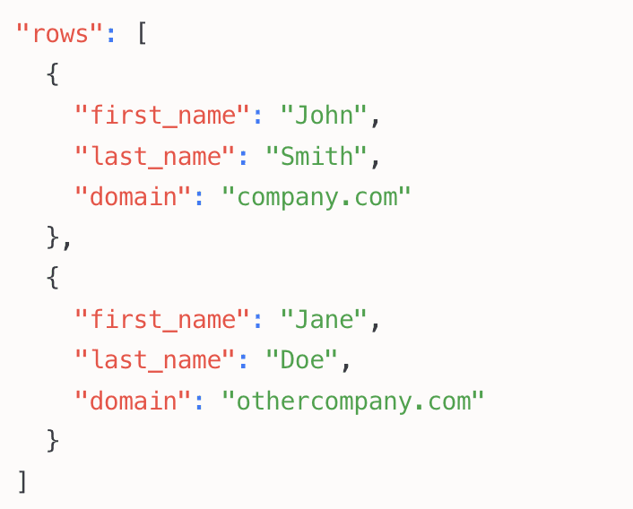 No parâmetro "rows", forneça as informações sobre o prospect: primeiro nome, sobrenome e domínio.