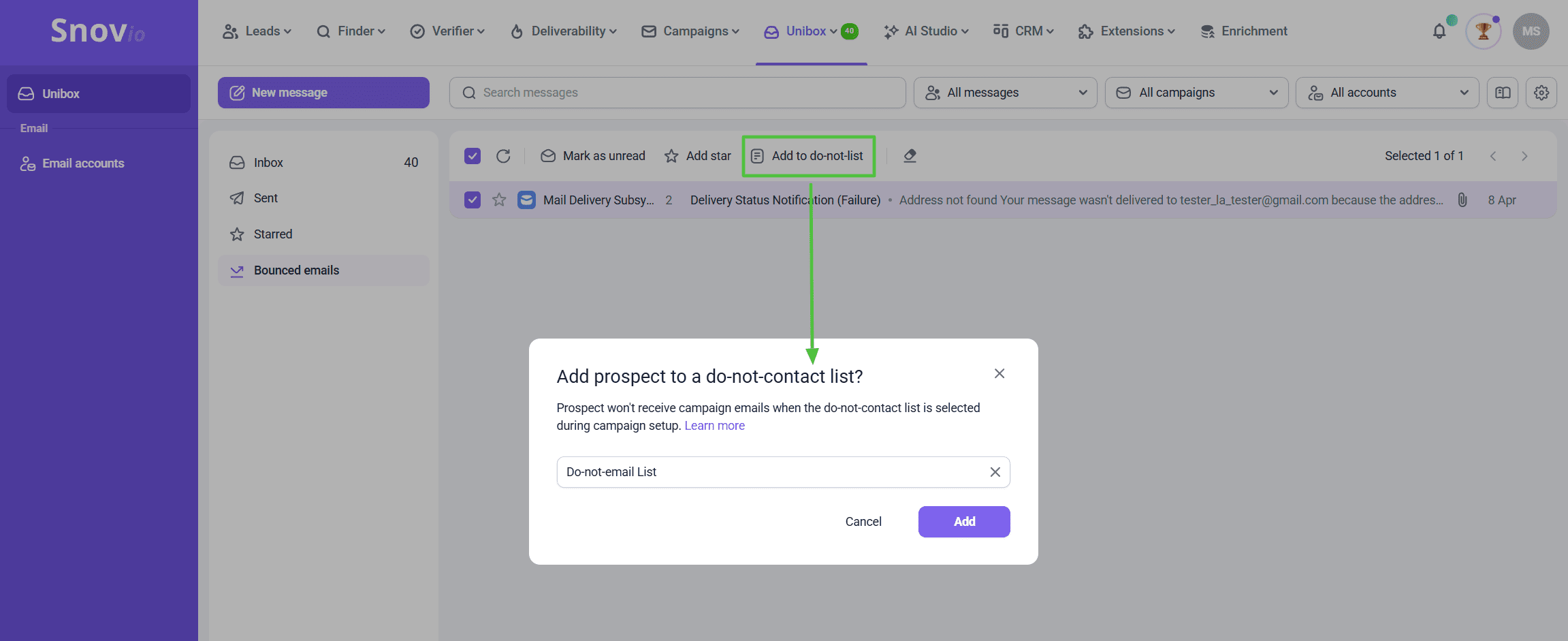 Passo 2. Clique em Adicionar à lista de não envio na barra de ações em massa.