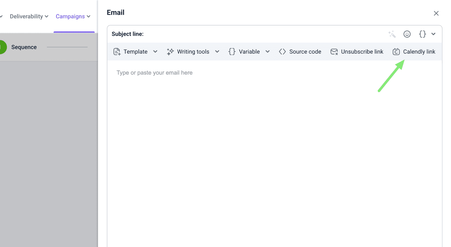 To add a meeting link to your email or message, click Calendly link in the campaign editor and select the meeting slot you want to include.