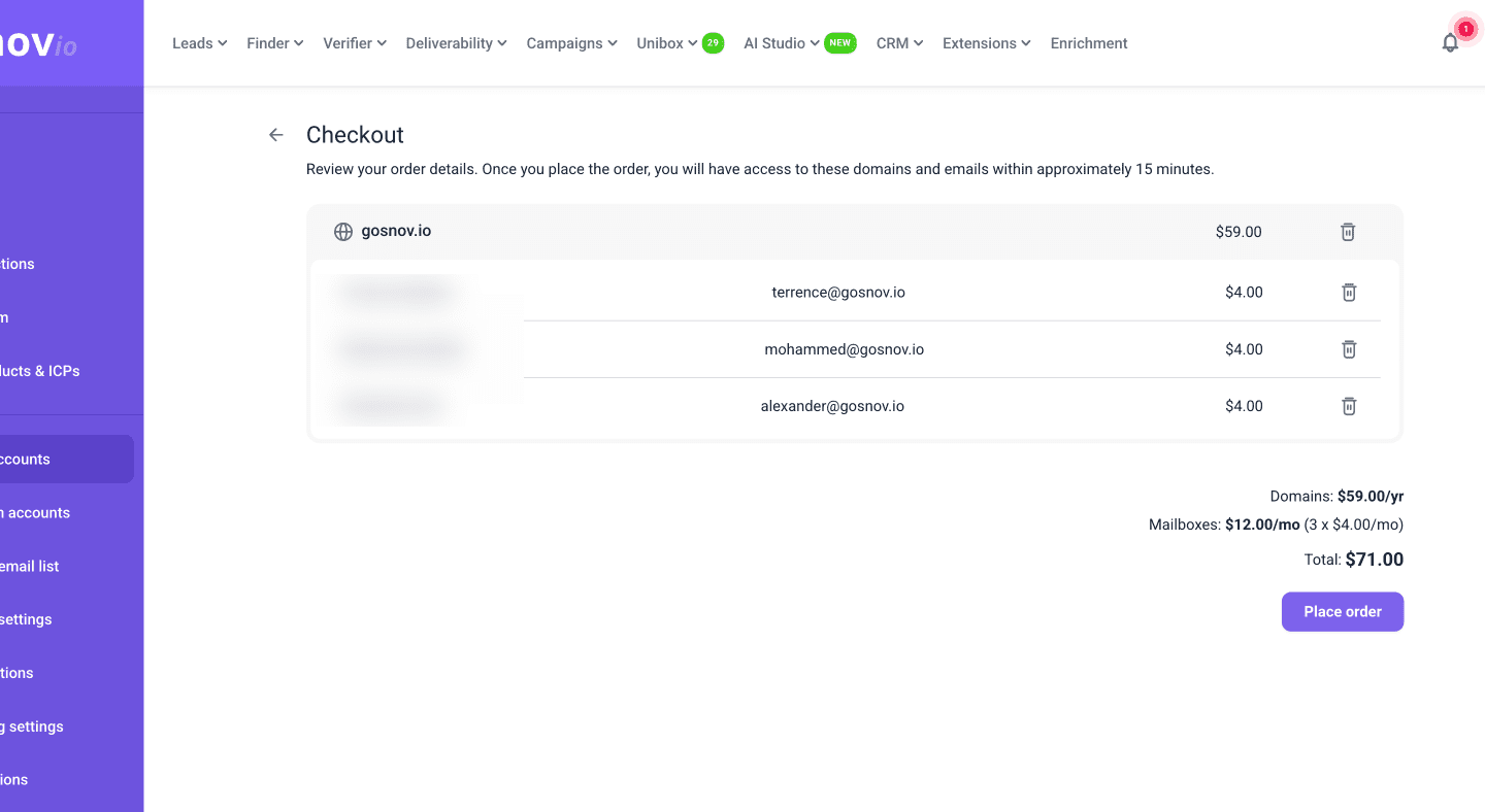 Using this option, you can buy domains and create email senders in bulk directly from your dashboard.
