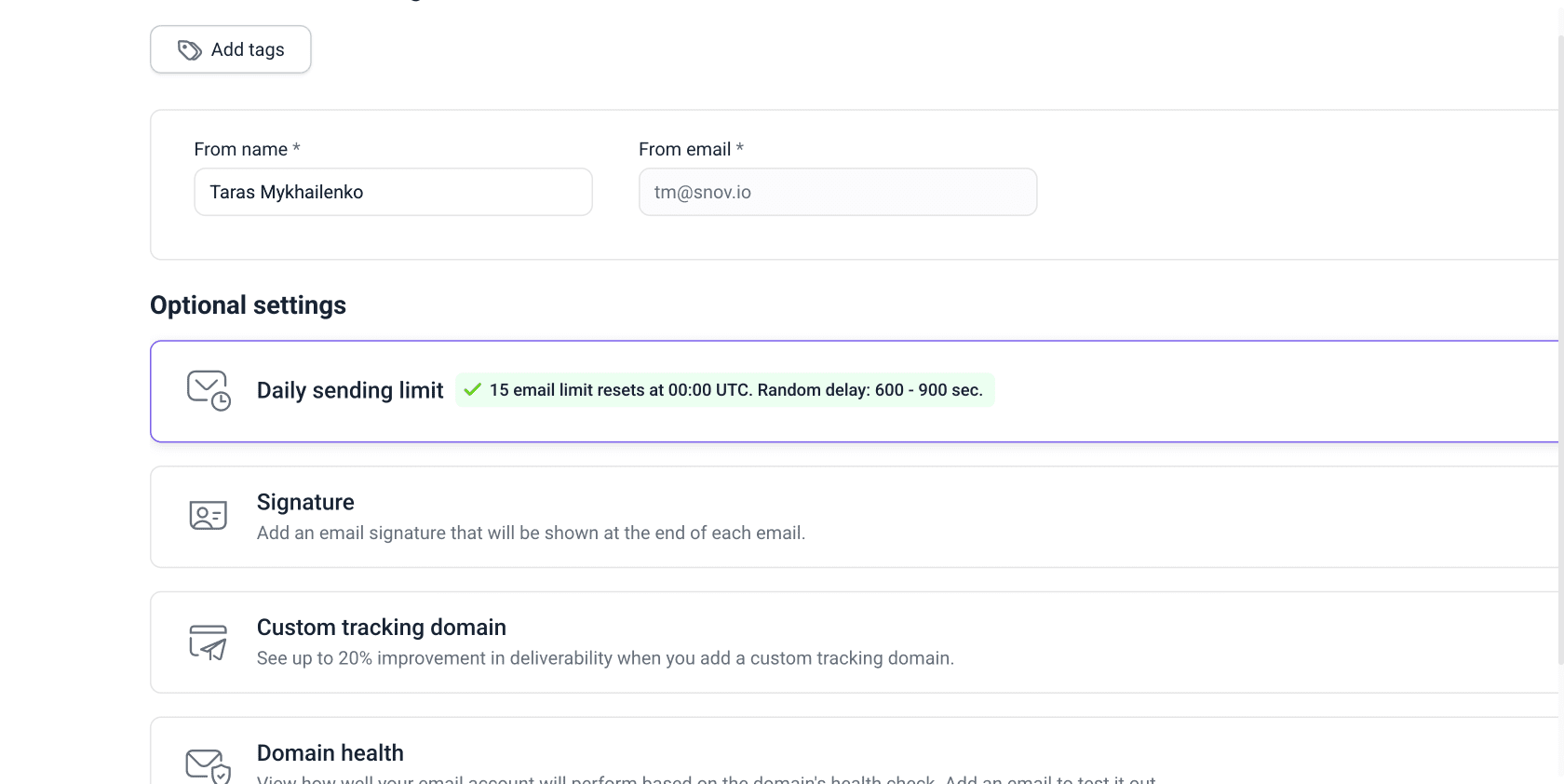 In DFY accounts, all essential settings are already configured for you by Snov.io.