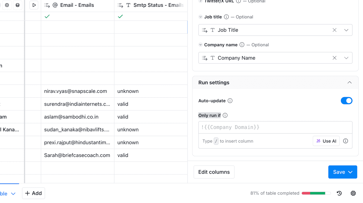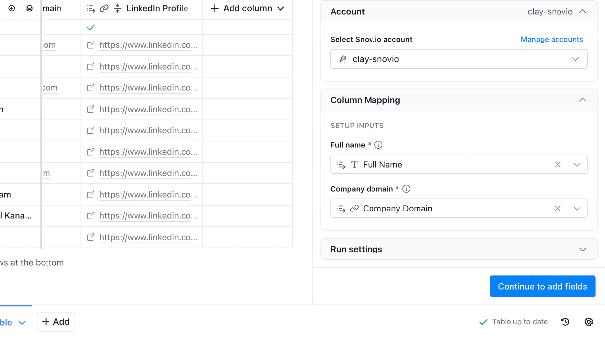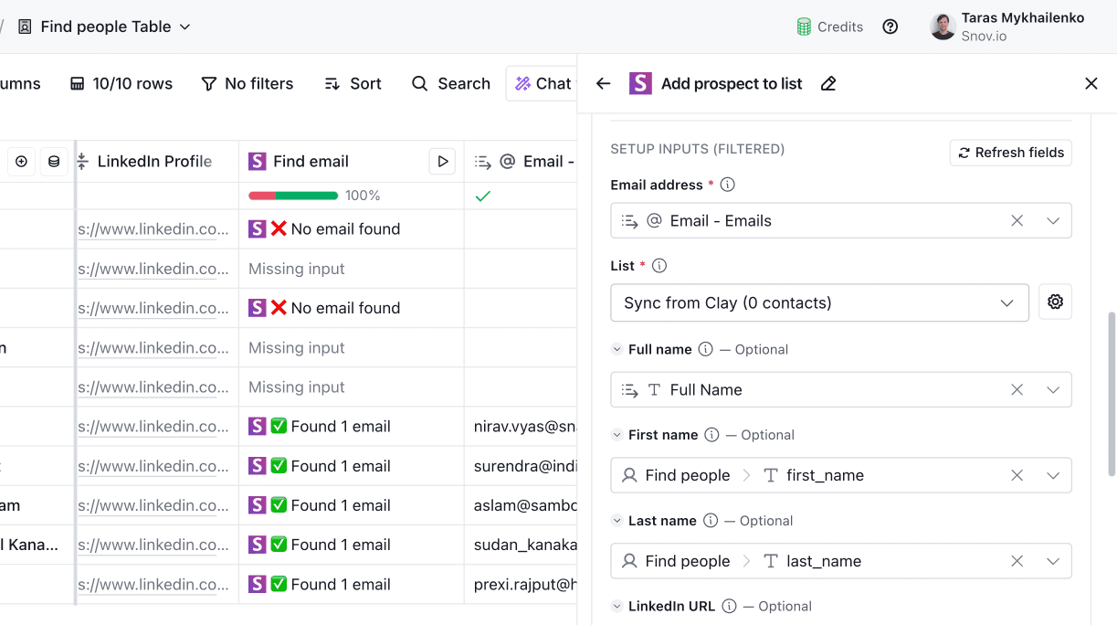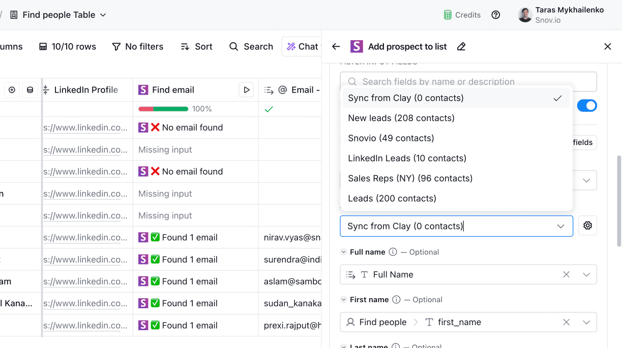 To keep your Snov.io list updated with new prospects without manual work, set up Clay to run Snovio actions automatically.