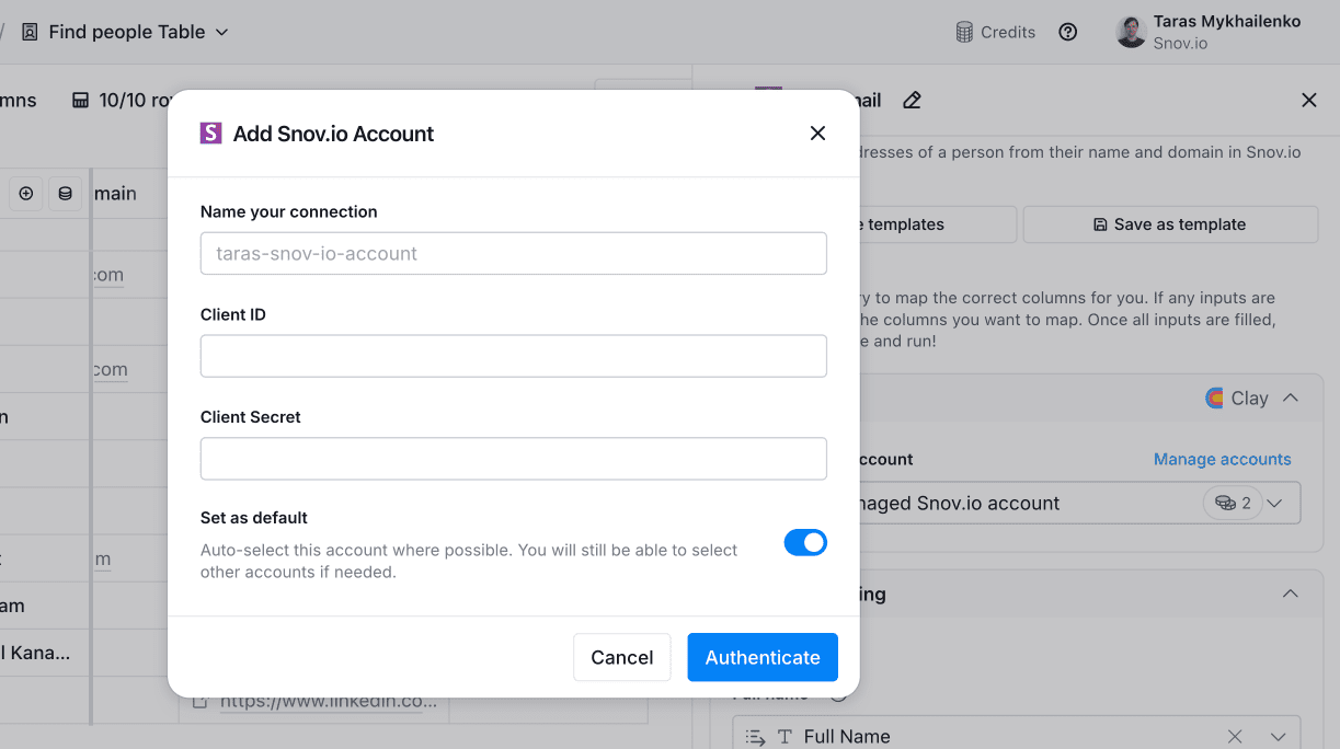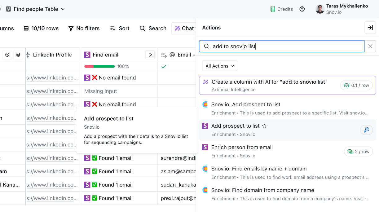 Action 1. Find and enrich prospects in Clay with Snov.io