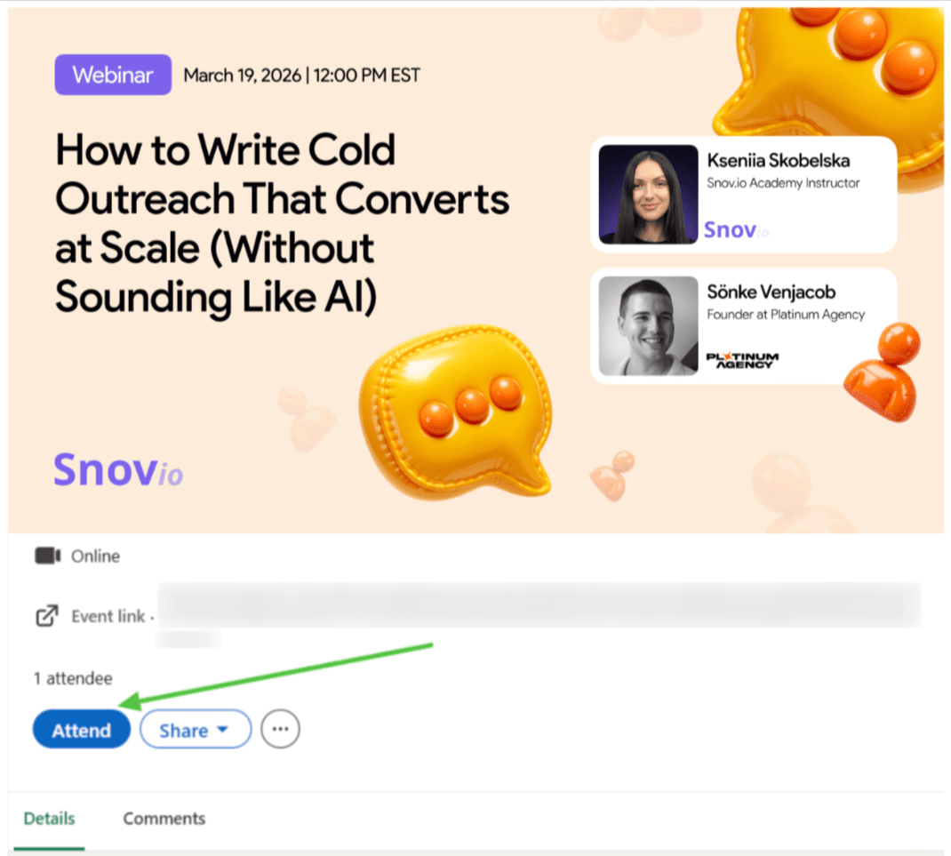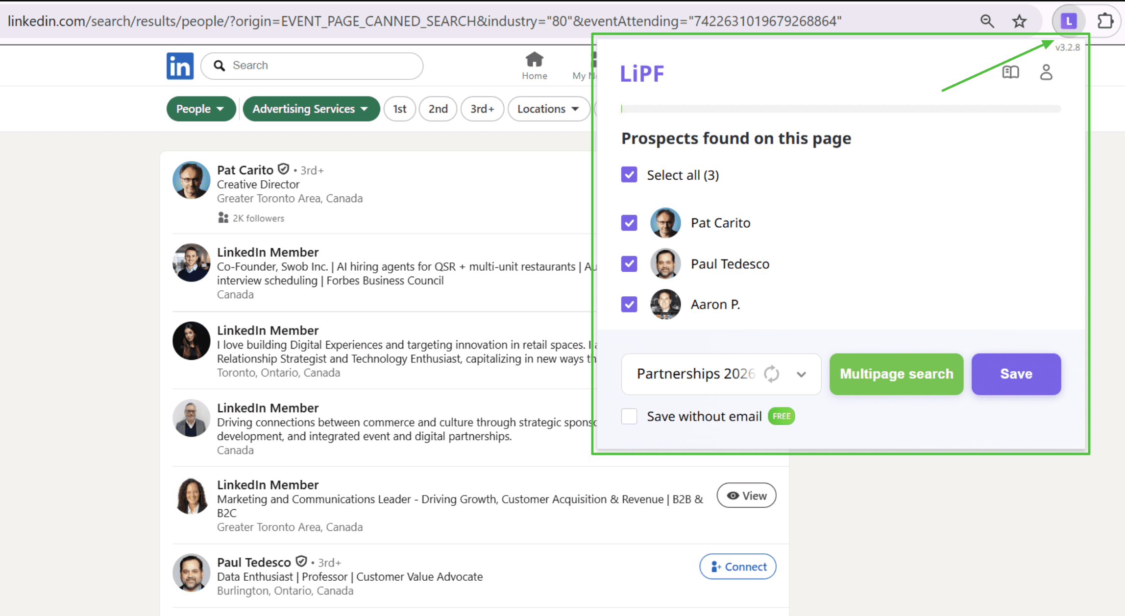 Activate extension → Extension saves attendee list to your Snov.io list. This way, you can more effectively identify and connect with prospects who may be looking for the solutions you provide.