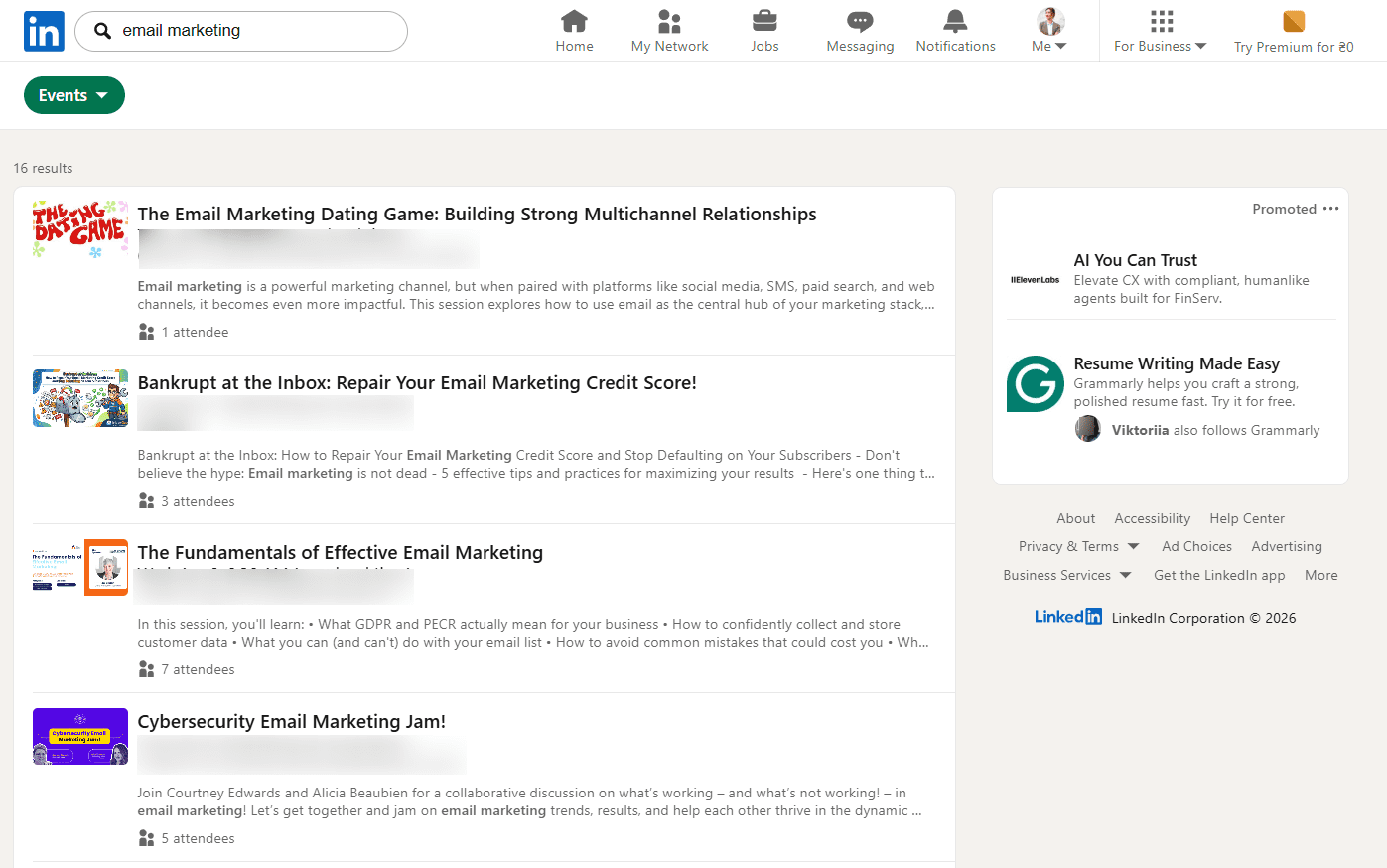 Choose relevant event → Click Attend. Attending lets you see other attendees.
