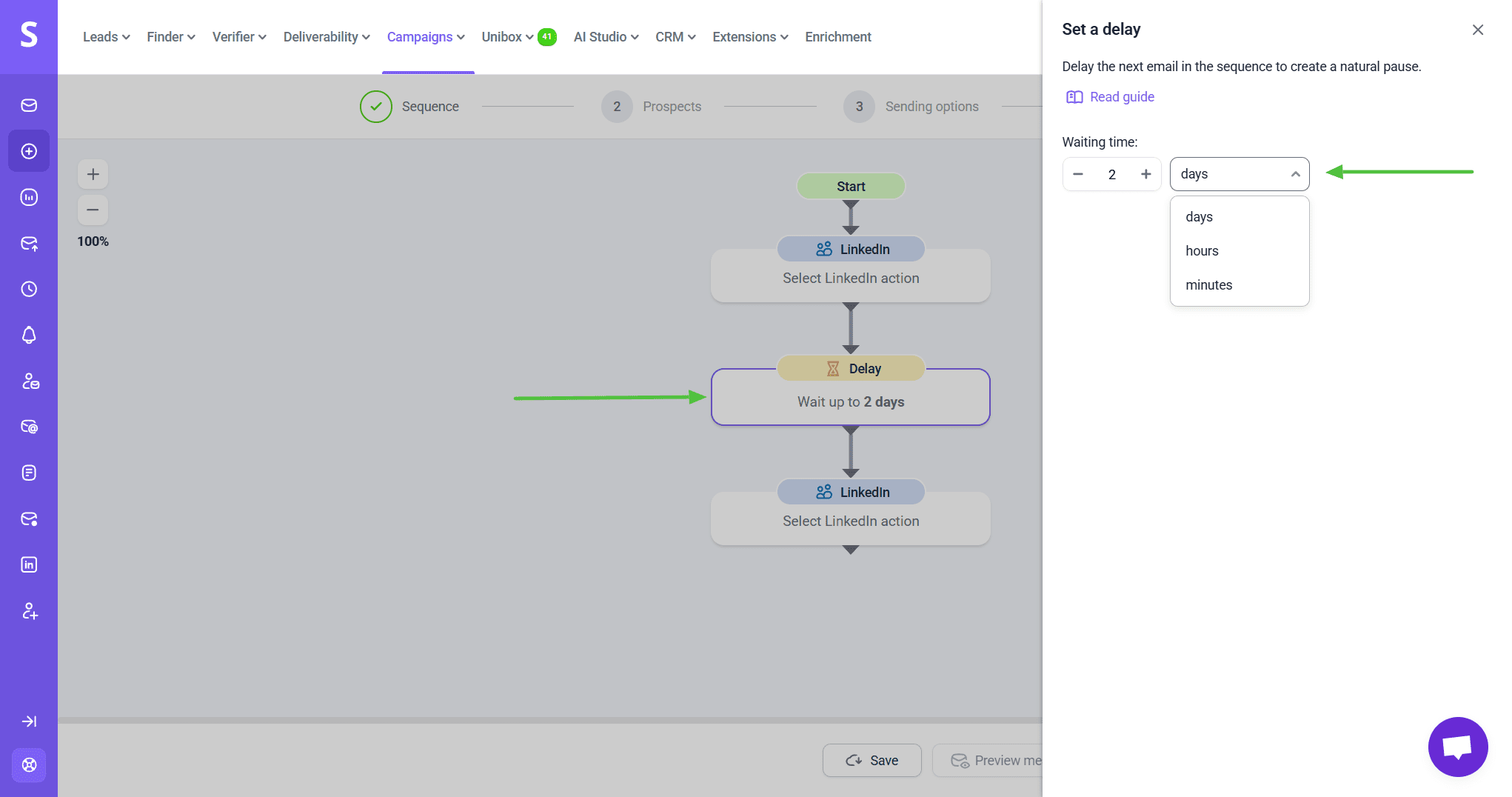 If you don’t set a schedule for your LinkedIn campaign, the sequence will run throughout the day at a natural pace.