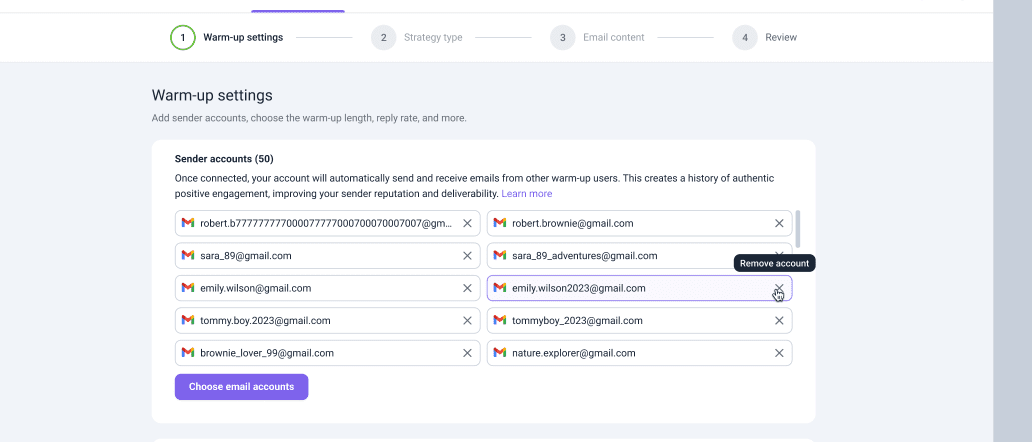 Choose warm-up strategies tailored for new email accounts or for accounts with deliverability and reputation issues.