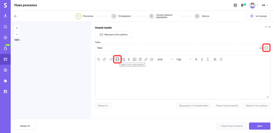 Під час надсилання листа ці змінні автоматично замінюються даними потенційного клієнта.
