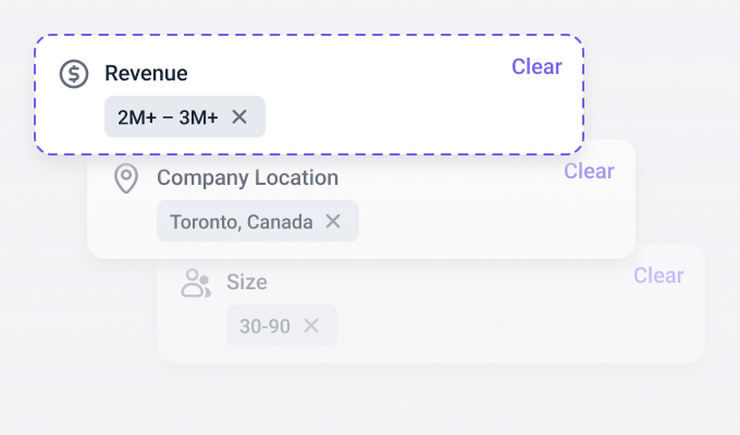 Collect all email addresses associated with specific domains. Perfect for account-based prospecting —search by job titles, teams, or departments within 60M+ companies in our database.